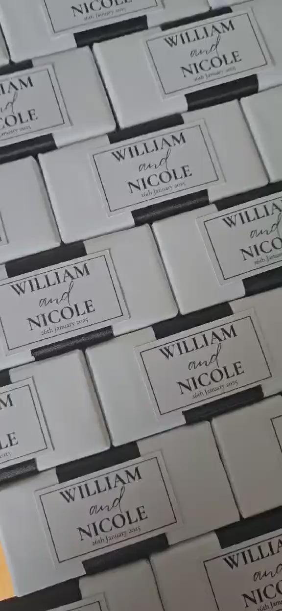 Add the finishing touch to your event with a Personalized Chocolate Bar Bonbonniere for your guests! Our delectable Chocolate Bar Bonbonniere Favours have got you covered by giving your guests something elegant to say thank you for sharing your special day with our mini personalised chocolate bars. They are the perfect blend of personal & scrumptious.